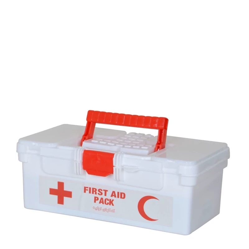 جعبه کمک های اولیه برزنتی کوچک قرمز با لوازم