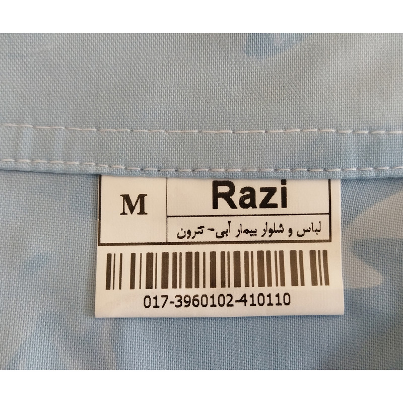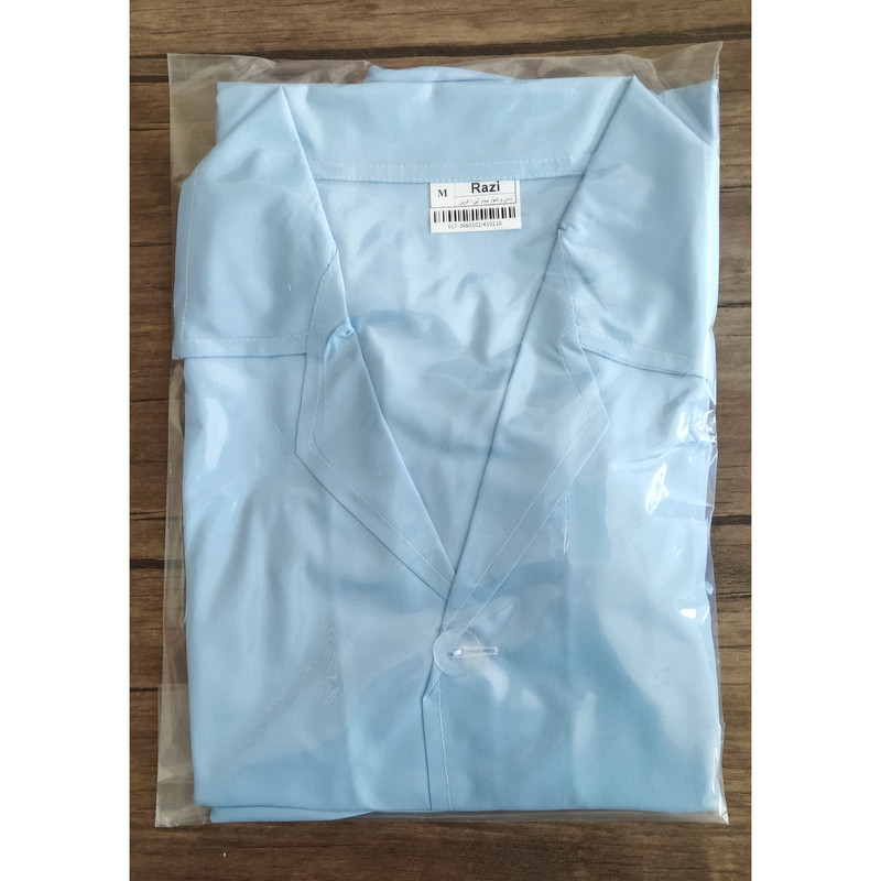 روپوش و شلوار بیمار مردانه رنگ ابی روشن کد 39601 رازی برای استفاده بیمار در منزل یا بیمارستان تولید شده است . پارچه این محصول تترون می باشد . برای انتخاب سایز مناسب ، یک روپوش قدیمی را از پشت اندازه گیری کنید و با جدول راهنمای سایز که در تصاویر روپوش قرار داده شده مقایسه کنید .دقت کنید حتما براساس جدول ، سایز خودتان را انتخاب کنید و سایز روپوش ، بامدل یا برند دیگر را معیار انتخاب سایز قرار ندهید .