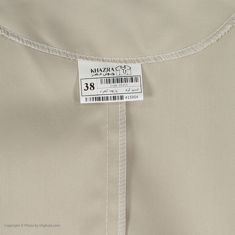 روپوش کار زنانه خضرا مدل شبنم رنگ کرم (کد 35203 ) در شرکت تبیان طب دیبا رازی طراحی و تولید شده است . پارچه این محصول کجراه است . از ویژگی های این محصول عدم ایجاد حساسیت و عدم تعریق میباشد. پارچه کجراه کمی ضخیمتر از پارچه تترون و ترگال است . برای انتخاب سایز مناسب ، یک روپوش قدیمی را از پشت اندازه گیری کنید و با جدول راهنمای سایز که در تصاویر روپوش قرار داده شده مقایسه کنید .دقت کنید حتما براساس جدول ، سایز خودتان را انتخاب کنید و سایز روپوش ، بامدل یا برند دیگر را معیار انتخاب سایز قرار ندهید . کالایی که دریافت می کنید دارای مارک های دوخته شده (خضرا khazra ) می باشد و بر روی هر روپوش ، کد کالا درج شده است .