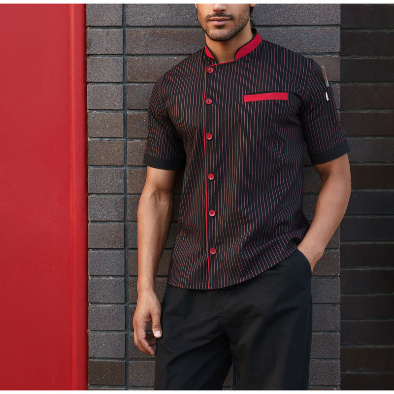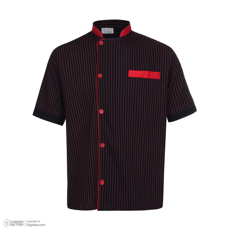 سایر توضیحات: پارچه کتان کش - دارای یک جیب بالا - رنگ قرمز و مشکی - آستین کوتاه