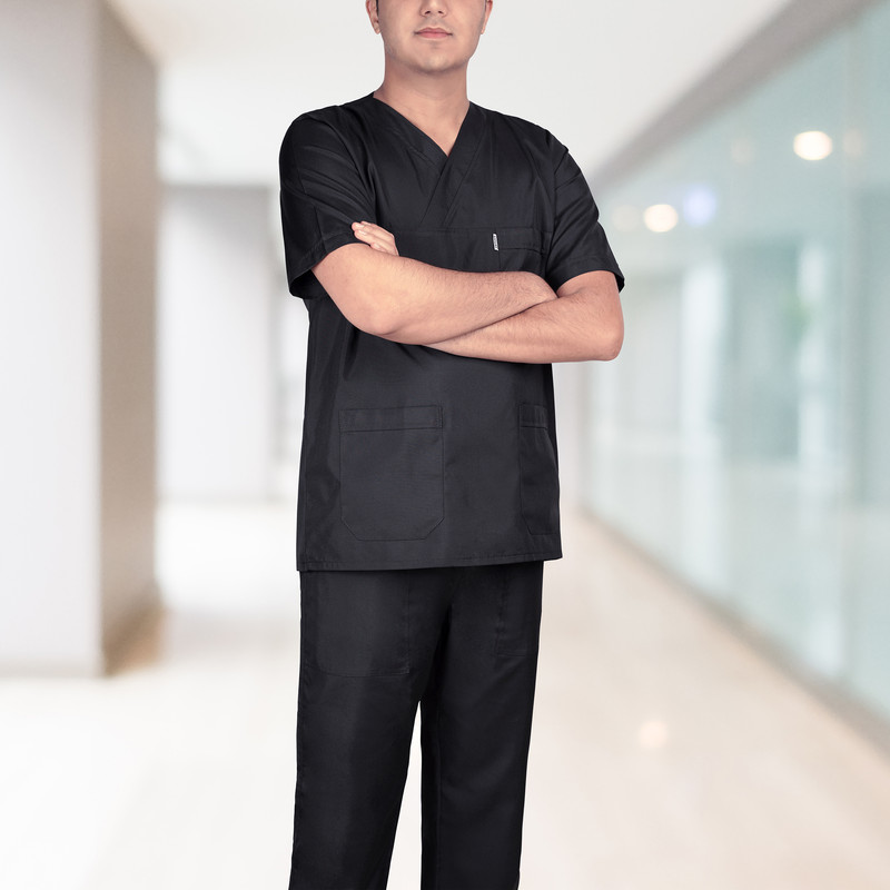 ست لباس و شلوار اتاق عمل مشکی مردانه خضرا کد RK38026 در شرکت تبیان طب دیبا رازی طراحی و تولید شده است . پارچه این محصول ترگال می باشد . از ویژگی های این محصول عدم ایجاد حساسیت و عدم تعریق و وزن کم میباشد.پارچه ترگال کمی ضخیم تر از پارچه تترون میباشد ، که باعث افزایش عمر محصول در برابر ست های تترون میگردد .برای انتخاب سایز مناسب ، یک ست قدیمی را از پشت اندازه گیری کنید و با جدول راهنمای سایز که در تصاویر قرار داده شده مقایسه کنید .دقت کنید حتما براساس جدول ، سایز خودتان را انتخاب کنید و سایز روپوش ، بامدل یا برند دیگر را معیار انتخاب سایز ، قرار ندهید . محصولی که دریافت می کنید دارای مارک های دوخته شده خضرا (KHAZRA) می باشد و نوع پارچه و کد محصول روی هر محصول درج شده است .
