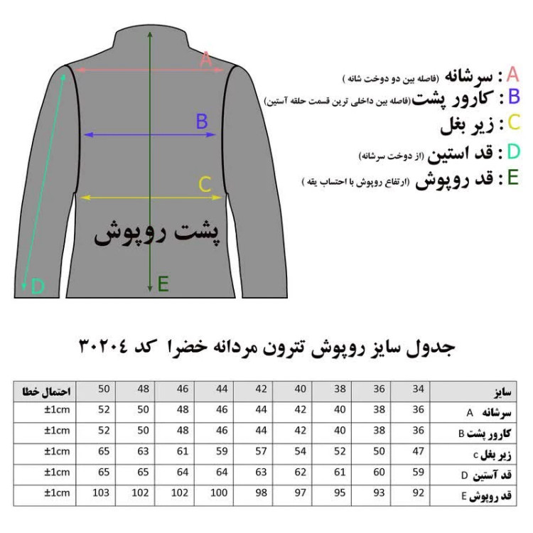 برای انتخاب سایز مناسب، لطفاً جدول سایز موجود در تصاویر محصول را مشاهده کنید و مطابق آن سایز خود را انتخاب نمایید.
