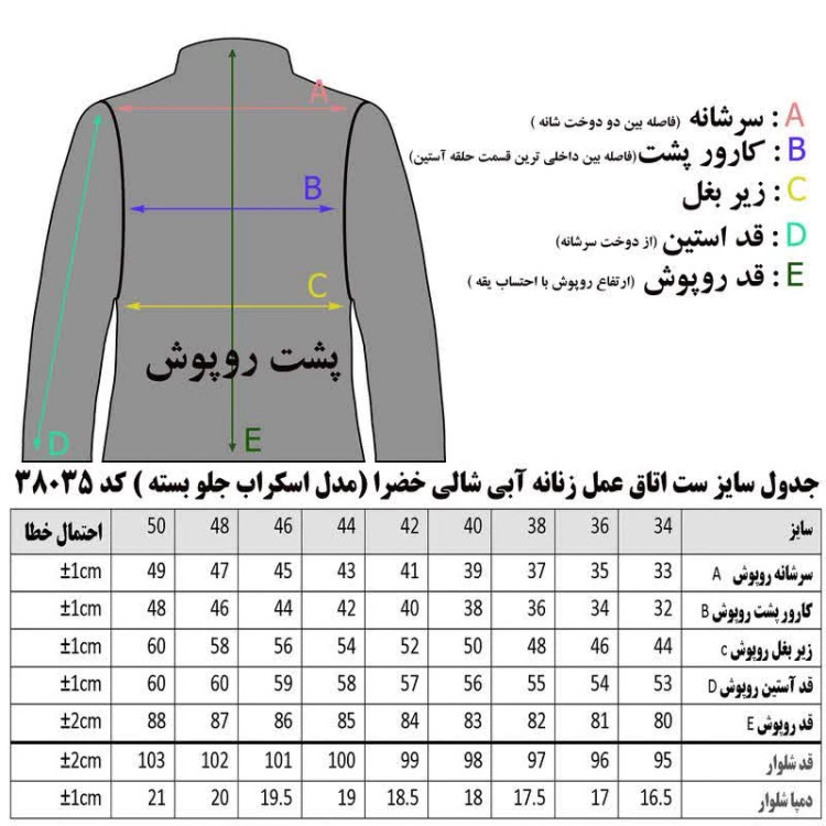 ست لباس و شلوار اتاق عمل زنانه خضرا مدل اسکراب جلو بسته (رنگ ابی شالی کد 38035 ) در شرکت تبیان طب دیبا رازی طراحی و تولید شده است . پارچه این محصول ترگال می باشد . از ویژگی های این محصول عدم ایجاد حساسیت و عدم تعریق و وزن کم میباشد.پارچه ترگال کمی ضخیم تر از پارچه تترون میباشد ، که باعث افزایش عمر محصول در برابر ست های تترون میگردد .برای انتخاب سایز مناسب ، یک ست قدیمی را از پشت اندازه گیری کنید و با جدول راهنمای سایز که در تصاویر قرار داده شده مقایسه کنید .دقت کنید حتما براساس جدول ، سایز خودتان را انتخاب کنید و سایز روپوش ، بامدل یا برند دیگر را معیار انتخاب سایز ، قرار ندهید . محصولی که دریافت میکنید دارای مارک های دوخته شده خضرا (KHAZRA) می باشد و نوع پارچه و کد محصول روی هر محصول درج شده است .
