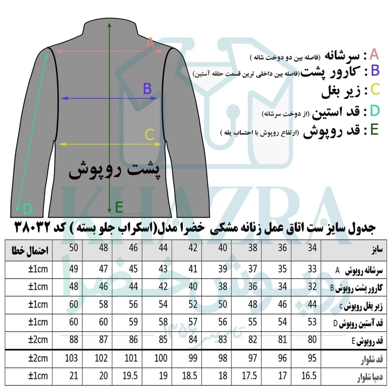 ست لباس و شلوار اتاق عمل زنانه خضرا مدل اسکراب جلو بسته (کد 38032) یکی از محصولات حرفهای برند خضرا است که در شرکت تبیان طب دیبا رازی طراحی و تولید شده است. این ست مخصوص پرسنل پزشکی، اتاق عمل و مراکز درمانی طراحی شده و راحتی و دوام بالا را همزمان ارائه میدهد.