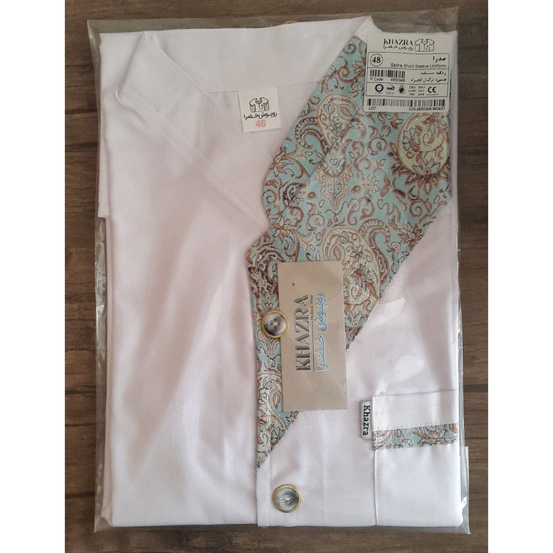 روپوش آشپزی خضرا مدل صدرا سفید کد 46500 در شرکت تبیان طب دیبا رازی طراحی و تولید شده است . پارچه این محصول کجراه می باشد . از ویژگی های این محصول عدم ایجاد حساسیت و عدم تعریق و وزن کم و ثبات رنگ پارچه میباشد. پارچه کجراه کمی ضخیم تر از پارچه ترگال و تترون میباشد که باعث افزایش عمر روپوش در برابر روپوشهای ترگال و تترون میگردد .برای انتخاب سایز مناسب ، یک روپوش قدیمی را از پشت اندازه گیری کنید و با جدول راهنمای سایز که در تصاویر روپوش قرار داده شده مقایسه کنید .دقت کنید حتما براساس جدول ، سایز خودتان را انتخاب کنید و سایز روپوش ، بامدل یا برند دیگر را معیار انتخاب سایز قرار ندهید . کالایی که دریافت میکنید دارای مارک های دوخته شده (خضرا) می باشد و در صورت دریافت کالای غیر اصل ، به پپشتیبانی دیجی کالا یا به شرکت اطلاع دهید .