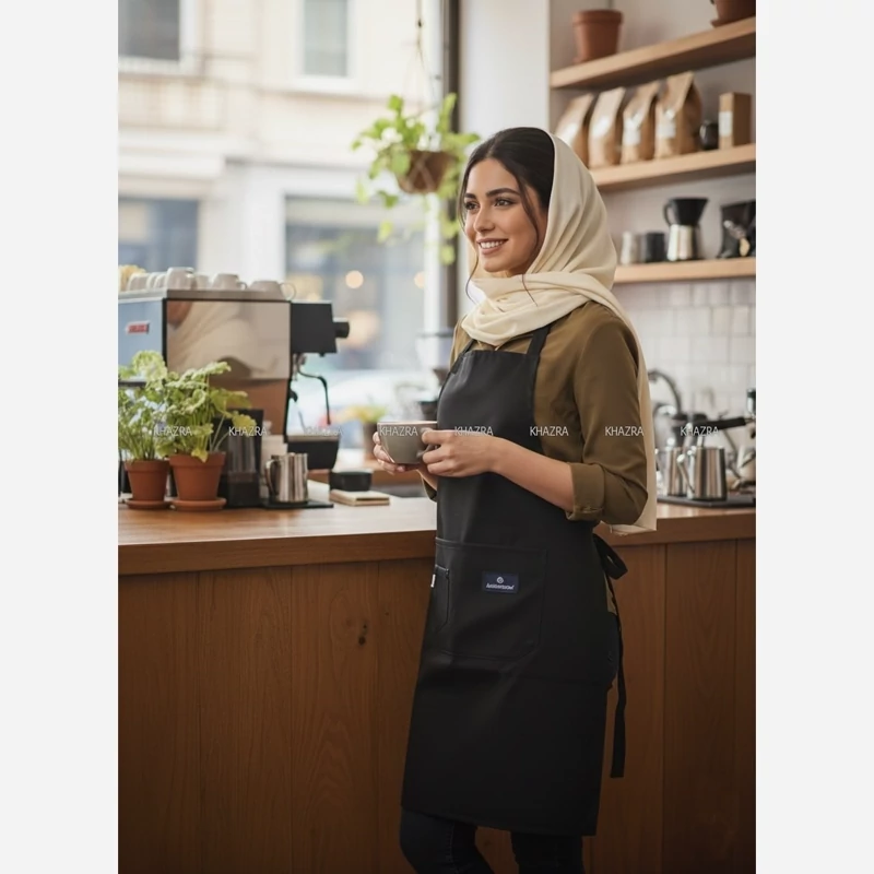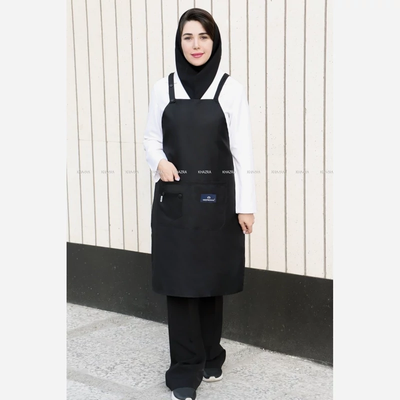 پیش بند قابل تنظیم پارچه ای 3 جیب رنگ مشکی خضرا