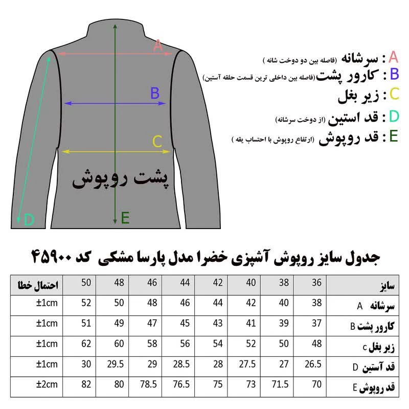 روپوش آشپزی خضرا مدل پارسا 45900