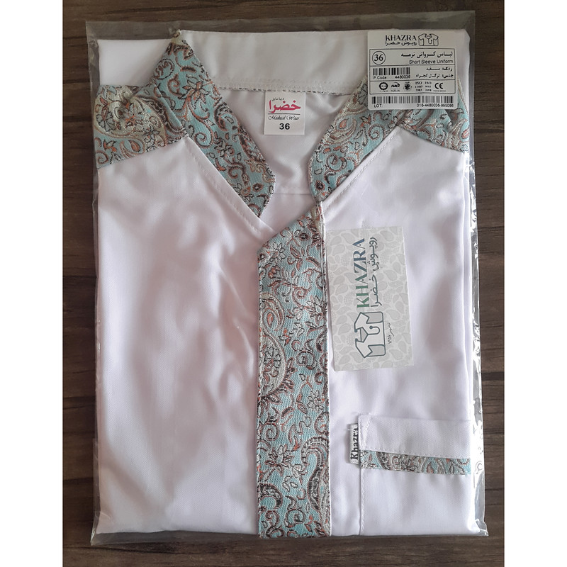 روپوش آشپزی خضرا کد 44800 در شرکت تبیان طب دیبا رازی طراحی و تولید شده است . پارچه این محصول کجراه می باشد . از ویژگی های این محصول عدم ایجاد حساسیت و عدم تعریق و وزن کم و ثبات رنگ پارچه میباشد. پارچه کجراه کمی ضخیم تر از پارچه ترگال و تترون میباشد که باعث افزایش عمر روپوش در برابر روپوشهای ترگال و تترون میگردد .برای انتخاب سایز مناسب ، یک روپوش قدیمی را از پشت اندازه گیری کنید و با جدول راهنمای سایز که در تصاویر روپوش قرار داده شده مقایسه کنید .دقت کنید حتما براساس جدول ، سایز خودتان را انتخاب کنید و سایز روپوش ، بامدل یا برند دیگر را معیار انتخاب سایز قرار ندهید . کالایی که دریافت میکنید دارای مارک های دوخته شده (خضرا) می باشد و بر روی هر محصول نام و کد وسایز و جنس پارچه ، درج شده است .