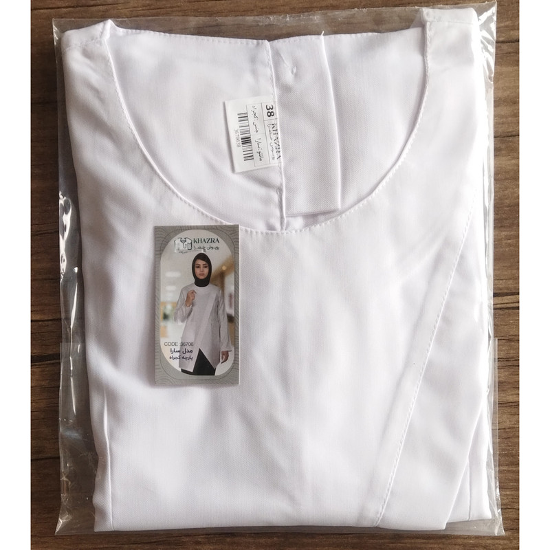 روپوش پزشکی زنانه خضرا مدل سارا کد 36706 (اسکراب سفید جلو بسته ) در شرکت تبیان طب دیبا رازی طراحی و تولید شده است . شرکت تبیان طب دیبا رازی مالک علامت های تجاری خضرا - جاما - تبیان - میباشد . پارچه این محصول کجراه می باشد . از ویژگی های این محصول عدم ایجاد حساسیت و عدم تعریق و وزن کم میباشد.پارچه کجراه کمی ضخیم تر از پارچه تترون و ترگال میباشد که باعث افزایش عمر روپوش در برابر روپوشهای تترون و ترگال میگردد .برای انتخاب سایز مناسب ، یک روپوش قدیمی را از پشت اندازه گیری کنید و با جدول راهنمای سایز که در تصاویر روپوش قرار داده شده مقایسه کنید .دقت کنید حتما براساس جدول ، سایز خودتان را انتخاب کنید و سایز روپوش ، بامدل یا برند دیگر را معیار انتخاب سایز قرار ندهید . محصولی که دریافت میکنید دارای مارک های دوخته شده خضرا میباشد و نوع پارچه و کد محصول روی هر محصول درج شده است . در صورت دریافت کالایی با برند یا کد محصول مغایر با این کالا ، به پشتیبانی دیجی کالا اطلاع دهید . جلوی این روپوش بدون دکمه و جلو بسته می باشد و در قسمت پشت گردن دارای یک دکمه میباشد .